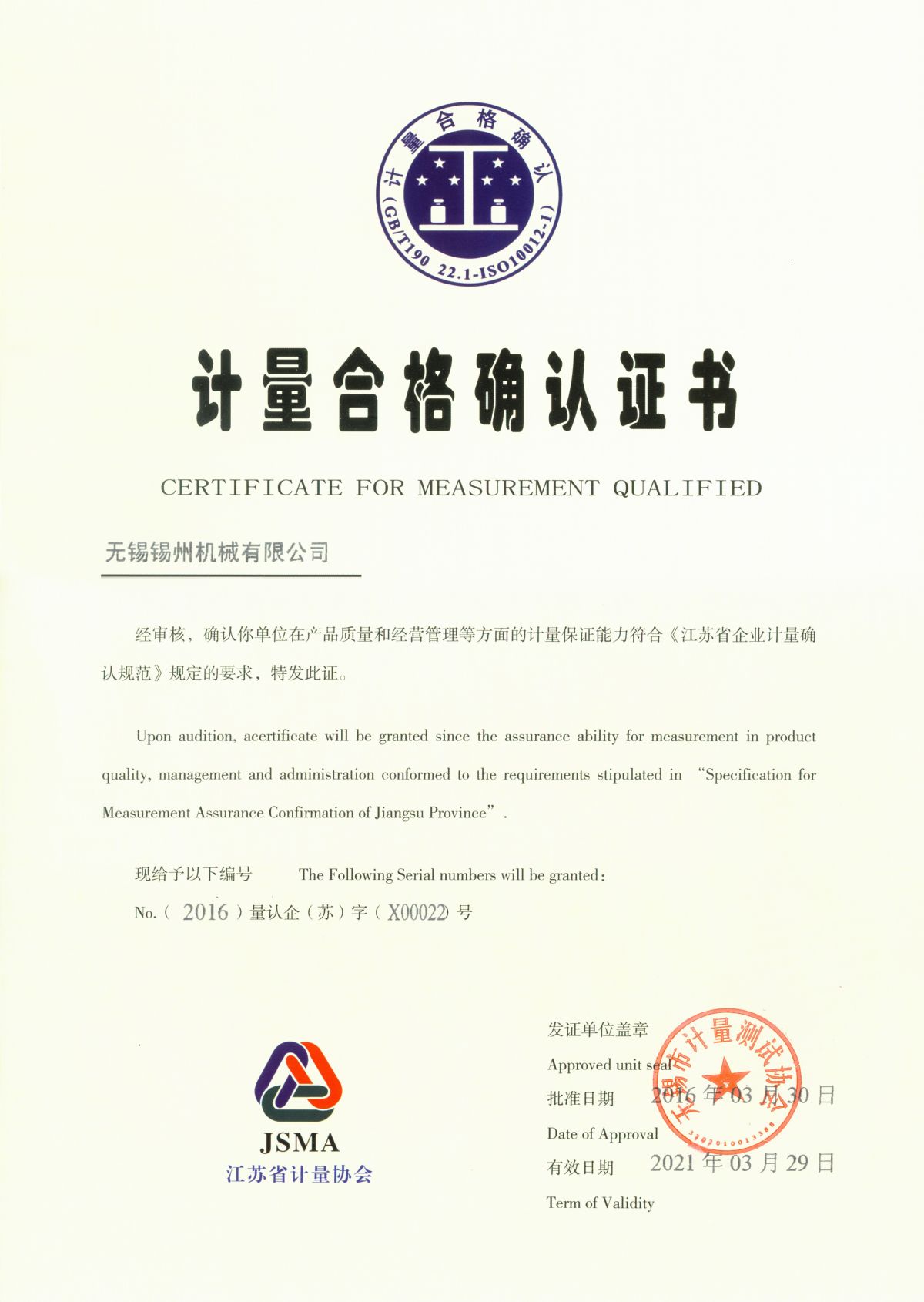 “ 以質(zhì)量求生存,以管理增效益”是錫州機(jī)械堅(jiān)定不渝的經(jīng)營(yíng)理念;“質(zhì)量第一、客戶至上”是錫州機(jī)械堅(jiān)持不懈的追求;“ 以人為本,鑄就優(yōu)質(zhì)產(chǎn)品, 精益求精,增強(qiáng)顧客滿意”是錫州機(jī)械持之以恒的質(zhì)量方針。 2001年7月公司通過(guò)ISO9001:2000質(zhì)量體系認(rèn)證, 2005年9月通過(guò)ISO/TS16949質(zhì)量體系認(rèn)證。公司于2007年7月通過(guò)產(chǎn)品ASME認(rèn)證。 通過(guò)開展以產(chǎn)品質(zhì)量為中心的企業(yè)管理,公司以先進(jìn)的生產(chǎn)檢測(cè)設(shè)備、完善的質(zhì)量保證體系、嚴(yán)密的產(chǎn)品開發(fā)體系、嚴(yán)格按照標(biāo)準(zhǔn)開展產(chǎn)品生產(chǎn)管理,并開展6S現(xiàn)場(chǎng)管理,竭盡全力創(chuàng)造一個(gè)比較清潔、健康、安全的環(huán)境,全方位地滿足國(guó)內(nèi)外客戶的要求。